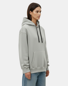 This hoodie in a rich petrol silver hue combines minimal design with ultimate comfort. Crafted from a premium mid-weight cotton-blend fabric, it offers a smooth, structured drape while remaining breathable and soft against the skin. The classic kangaroo pocket and ribbed hems provide a secure fit and functionality, while the tonal stitching enhances the clean silhouette.