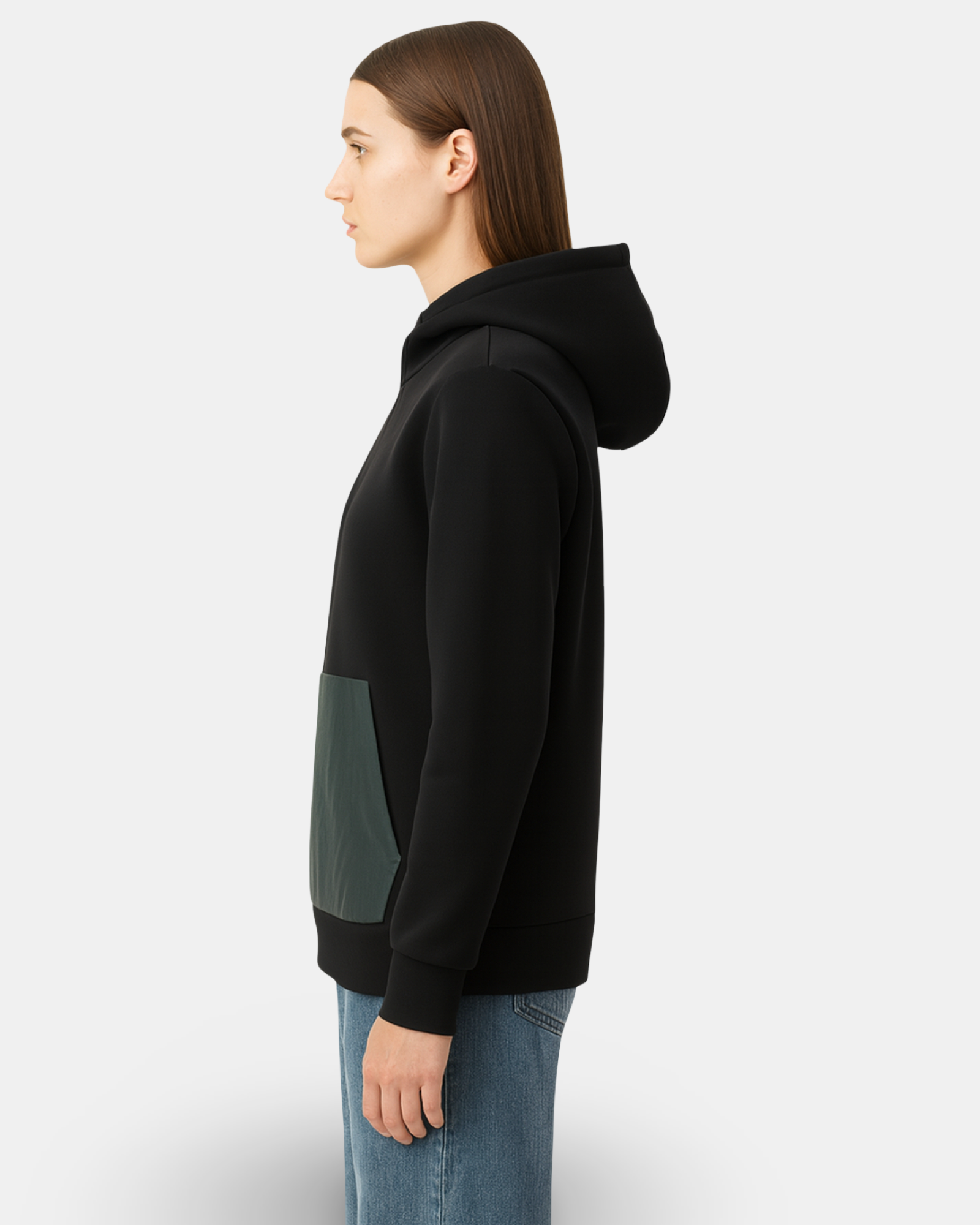 BLACK CONTRAST POCKET UNISEX HOODIE W25N