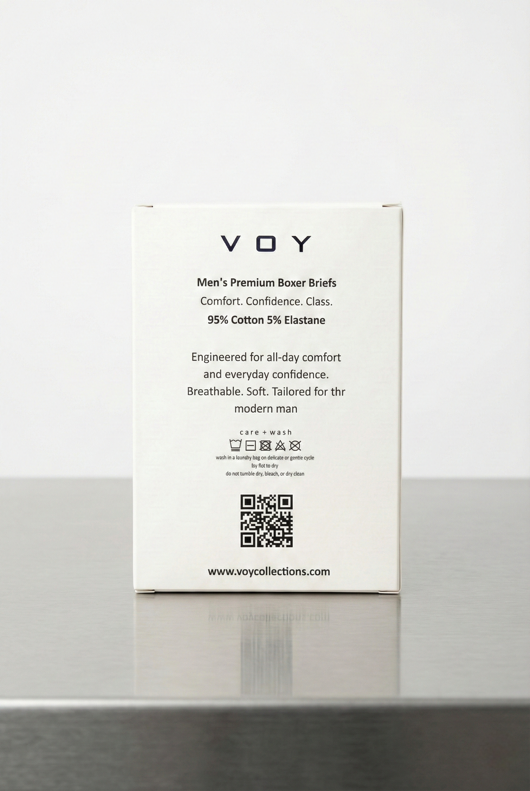 • Premium elastic waistband with subtle embossed VOY branding