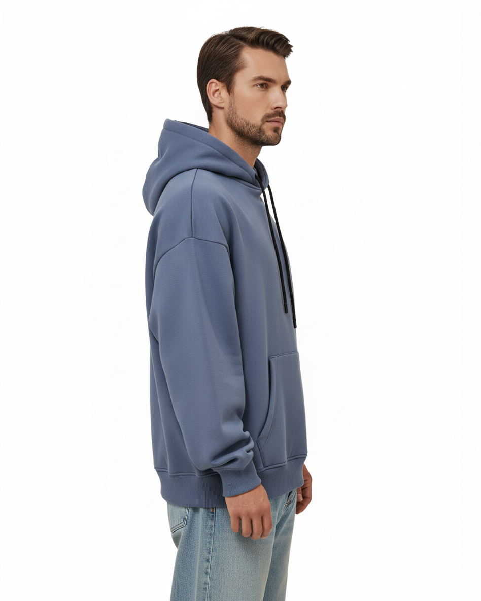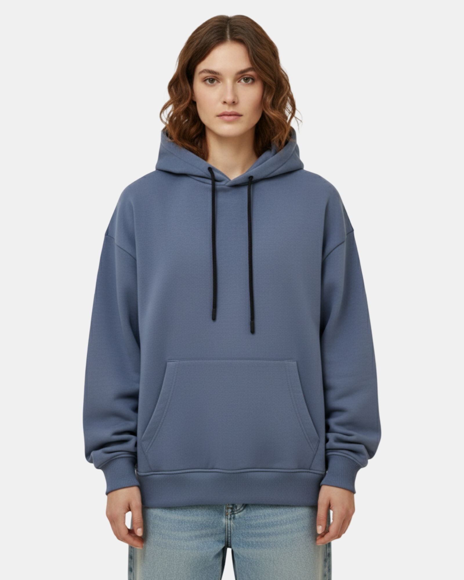 PETROL UNISEX OVERSIZED BLUE BASIC HOODIE W25N